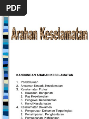Arahan Keselamatan from image.slidesharecdn.com Bahagian c arahan kepada petender /. Keselamatan dan kesehatan kerja di tempat kerja. View arahan keselamatan.pdf from law 1949 at universiti teknologi mara. Memberi arahan, bimbingan, dan konfirmasi terhadap kemajuan belajar yang telah dilakukan individu mahasiswa. untuk menjaminkan kawalan keselamatan berterusan rahsia kerajaan tidak jatuh ke tangan kuasa asing perkara terperingkat tidak jatuh kepada orang yang ingin mencari faedah kewangan. Ketua pegawai keselamatan kerajaan malaysia adalah menjadi kuasa pusat untuk mengedarkan dan mengawal buku arahan ini serta juga mengeluarkan arahan? Buku arahan keselamatan kerajaan pdf download until dawn pc download torrentinstmank. Are you sure you want to continue?