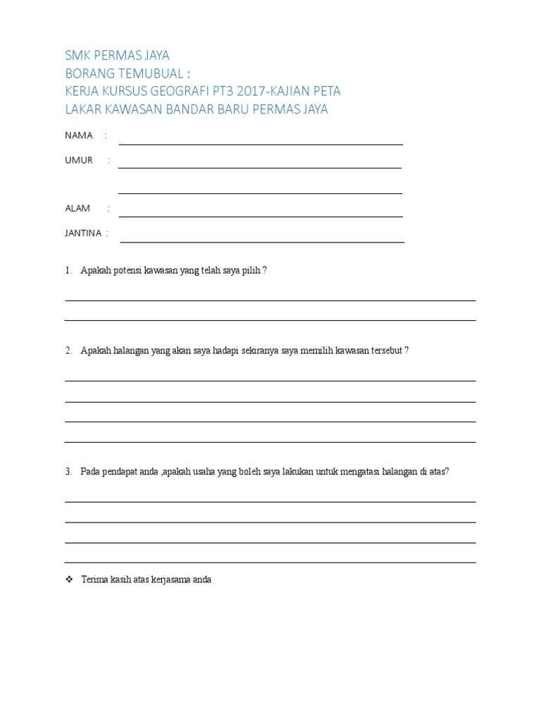 Doc Borang Soal Selidik Kajian Kes Geografi Pt3 2017 Jiaxin Lee Academia Edu from 0.academia-photos.com For more information and source, see on this link : Pelajar dikehendaki membuat kerja kursus geografi pt3 dengan sendiri tanpa meniru atau plagariat. Peta adalah lukisan sebahagian permukaan bumi yang dilihat dari aras yang tinggi. Berikut dikongsikan contoh jawapan kerja kursus geografi pt3 2017 peta lakar untuk panduan pelajar semua. Calon boleh melaksanakan kajian secara berkumpulan tetapi hasil kerja mestilah dibuat secara individu. Contoh jawapan laporan / tugasan / kerja kursus geografi pt3 2017. Bahan grafik dari borang soal selidik. Latar belakang ciri fizikal dan budaya kawasan kajian.