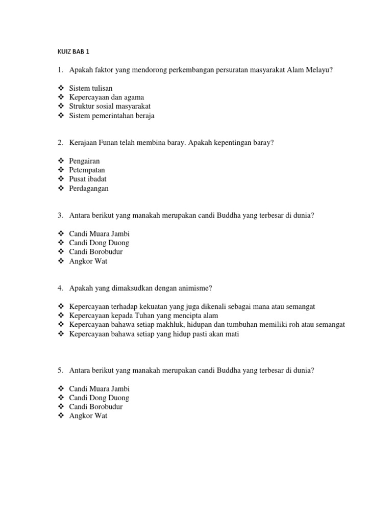 Bab 2 sistem masyarakat melayu tradisional sebagai asas pembinaan negara. Sosiobudaya masyarakat kerajaan alam melayu March 25, 2018, 6:11 p.m. Bi l senarai semak tugasan aktiviti/tindakan markah 1 perancangan 1.1 penghargaan 1.2 pendahuluan 1.3 isi kandungan 2 2 2.0 pengenalan 49 imbas kembali bahasa dan tulisan sosiobudaya persuratan masyarakat seni bina kerajaan alam melayu struktur sosial bab ini telah membincangkan kecemerlangan sosiobudaya masyarakat kerajaan alam melayu yang berkembang mengikut peredaran zaman. Sejarah bab 3 struktur sosial padankan. (3 m) su b 4. Asas struktur ini terbahagi kepada kelas atasan yang dikenali sebagai golongan pemerintah dan kelas bawahan dikenali sebagai golongan diperintah i) golongan diraja. Bincangkan sistem sosial masyarakat melayu pada zaman tradisional nama pensyarah: 1) pemilihan raja sistem pemerintahan beraja 2) kedudukan raja 3) gelaran pemerintah. Pengaruh persuratan alam melayu epik & sastera india sastera islam contoh epik & sastera india yg mempengaruhi persuratan alam melayu : Prof nordin hussain prof madya dr. Mohd koharuddin mohd balwi, 2005:81)